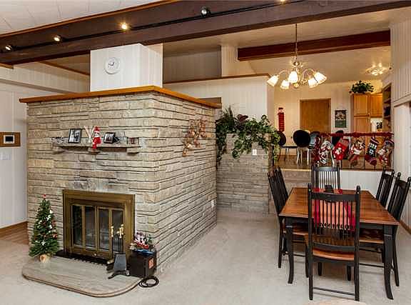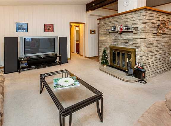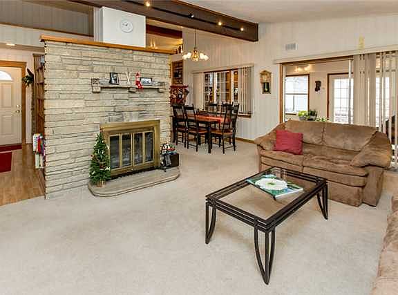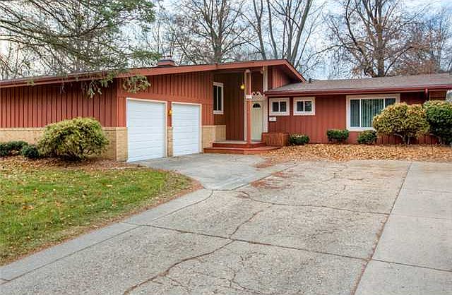 Distinctive style/abundant family spaces w/ this 3BR California Ranch. Vaulted entry w/ wood laminate flooring,stone wall & built in shelving. Spacious living room w/woodburning fireplace opens to dining area. Built in desk is a convenient family center! Step up to the striking kitchen w/tiled flooring,updated counters & breakfast area overlooking the living room/dining. Family room w/ fireplace,wetbar & built-ins & tons of great light w/the windows & sliders. 3BRs, master w/ private sink/vanity area off of main family BA-great function w/ the unique set up! Partially finished basement-a wonderful craft or home office space,laundry area & a fabulous fully tiled ? BA w/ unique European shower. Spacious 2 car garage w/access to kitchen & basement. Outside,you will love the low maintenance cedar siding,updated windows & roof & HUGE brick patio/entertaining space w/view of lovely yard. Lots of extras including security system/automated lighting controls & Russound multiroom audio system.