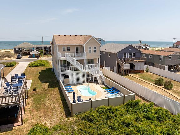 Experience luxury beach living in the heart of the Outer Banks, semi oceanfront in Kitty Hawk. This spacious and well equipped vacation rental property has all of the amenities that make for the perfect oceanside getaway. The views from the top level living area are what really makes this home spectacular. Enjoy the ocean breezes from multiple levels of spacious decks, or take a dip in the private pool after a long day at the beach. Currently a rental property, this home offers the opportunity for a new owner to have a full rental season already booked and the expected income ready to go. Additionally the home offers a recent fortified roof, HVAC updates, 2022 water heater replacement, new 7 person spa and so many other updates you can check off your list! This is a true turn key investment property and a chance to call the beach your second home away from home.