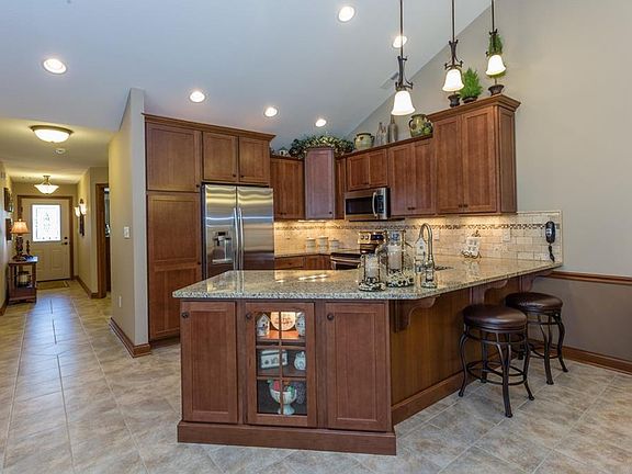 Reduced To Sell! Absolutely Perfect Maintenance Free Condo Living In New Palestine! Large Greatroom W/Cathedral Ceiling & Gas Fireplace. Fireplace Has Marble Surround & Custom Mantle. Stained Poplar Trim & Crown Moldings, 6 Panel Doors Throughout!Granite Countertops, Upgraded Stainless Steel Appliances, Breakfast Bar & Hickory Cabinets! Ceramic Tile Baths & Entry! Tray Ceiling & Walkin Closet In Master. Den Could Be Used As An Office Or Easily Converted Into 3rd Bdrm. 3 Season Sunroom. Maintenance Free Exterior.Epoxy Garagefloor, Heat Forced Air, 90% +High Efficiency Furnace +Humidifier, And So Much More! You Can't Help But Fall In Love With This Home!