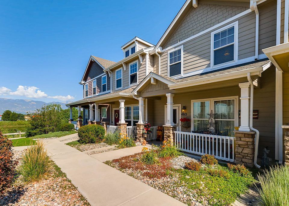 Exquisite town home has been meticulously maintained and boasts captivating unobstructed mountain views from the covered front porch. This 3 bedroom Townhouse offers a gourmet kitchen with island, stainless steel appliances and 42 inch oak cabinets. The large master suite has an attached 5 piece bathroom and walk in closet. This spacious home has a fully landscaped private back yard, 2 car detached garage, and is just minutes from Fort Carson!