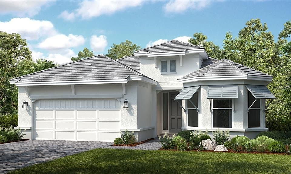 Under Construction. MLS#T3488708 REPRESENTATIVE PHOTOS ADDED. June 2024 Completion. The Lazio is a distinctive and highly desired floor plan, boasting a range of impressive amenities. With 3 bedrooms, 3 full baths, a study, and a two-car garage, this home provides a wealth of features. Enter through the foyer into a dining room and a generously proportioned great room. The designer kitchen, featuring a large island, overlooks the gathering room, connecting seamlessly to a spacious lanai—an ideal space for outdoor living. The owner's suite serves as a sanctuary, with dual sinks, a spacious shower, a water closet, and an expansive walk-in closet. Structural options include: tandem garage, gourmet kitchen, casual dining extension, study with pocket doors, pocket door at foyer, pre-plumb laundry sink, 10' ceilings, outdoor kitchen rough-in, extended lanai, 8' interior doors.