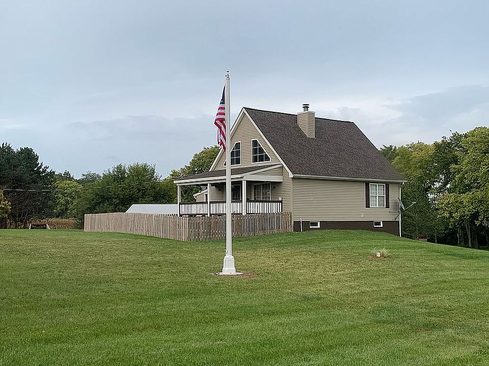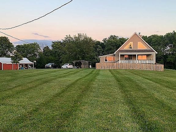 Come see this peaceful serenity between London and South Charleston. This 3.08 acre property has a creek that serves as a barrier to other properties, a stocked pond, and a smaller coy pond right off the barbecue patio. Inside on the main floor, you can find one of the bedrooms, a large bathroom with a soaker tub, the kitchen with an open floor concept leading to the sitting area and the living room that has a nice stone fireplace. The two sliding patio doors produce great lighting throughout the home, and gives you a nice view of the sunset off the front porch. Off the kitchen you can enjoy your time or entertain in the sunroom. Upstairs, there is another bedroom and a loft area that can be used as a play area or office that overlooks the living room. There is a full walkout basement that has been used for laundry and storage, but could be finished for additional space. Outside, there is 32x32 detached garage. The main garage is a 32x24 area that holds two vehicles with room in front/behind them. Off to the side there is a shed/storage area and a covered patio. You can also sit on the front deck and shoot at a 100 yard shoot range to a backstop. Updates since 2021 include new hardwood floors throughout the house, beautiful walnut trim, new interior doors, plumbing throughout the entire house, new electrical devices, new furnace and air conditioning unit, concrete in the barn, additional gravel for parking, and a new culvert pipe at the end of the driveway. Come see this neat property to really grasp the uniqueness of this home, and make it yours! For questions or to schedule a showing, call 937-631-2936 or 937-631-0099.