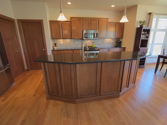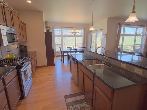 Beautiful ranch with walkout basement overlooking wooded ravine in College Community School District. This 4 bedroom and 3 bath offers plenty of space for any family. Hardwood floors with inlays lead into the great room and gourmet kitchen that offers custom cabinets and granite counter tops. 9' ceilings throughout the upstairs with plenty of windows that offer natural light. Hunter Douglas window treatment throughout upstairs. The lower level offers a great area to relax and have fun. Layout includes: theater room wired with surround sound, 4th bedroom, wet bar, large living room, bathroom, and an unfinished area that could easily be converted to a 5th bedroom. Extra features include central vac, gas fireplace, and built in lockers. Common area within the neighborhood that includes a stocked pond and basketball hoop.