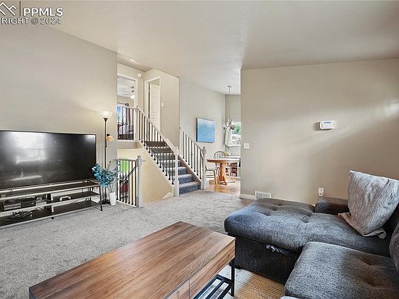 This adorable 4 bed 2 bath home is one that you won't want to miss! Located mins from shopping and close to Peterson AFB and Ft Carson. Cozy main level living room offers vaulted ceiling, plush new carpet, and great natural light! Spacious kitchen boasts beautiful tile counter tops, charming tile back splash and sleek stainless steel appliances! Upstairs features two large bedrooms and a fully updated bathroom! Tub/shower surround updated with beautiful tile work! Two more lower level bedrooms make for the perfect set up for teens, guests, or could be a great home office! Half bath includes updated vanity and fixtures as well! Private backyard and patio makes the perfect space for BBQ's or relaxing with friends! Open space behind means no neighbors looking in on you. Storage shed help keep the garage clean by providing plenty of additional space for yard tools and toys! Schedule your showing today!