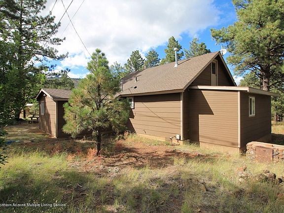 Country Rancher on over 3 acres adjacent to forest service. Horse property deluxe with a large turnout, permanent solid sided 75' round pen, run-in shed and tack room. Metal shop/garage with 1440 sqft of clear span space. 12' side walls, 5 12 pitched roof. 12' roll up door. Water collection system waters livestock all year round. Main living area has 2 bdrm, 1 bath and a loft. Separate living area with 1 bdrm and 1 bath. Remodeled kitchen with custom birch cabinets and corian counters. Pergo laminate floors. Dual pane, Low E windows. And, don't miss the tree house!