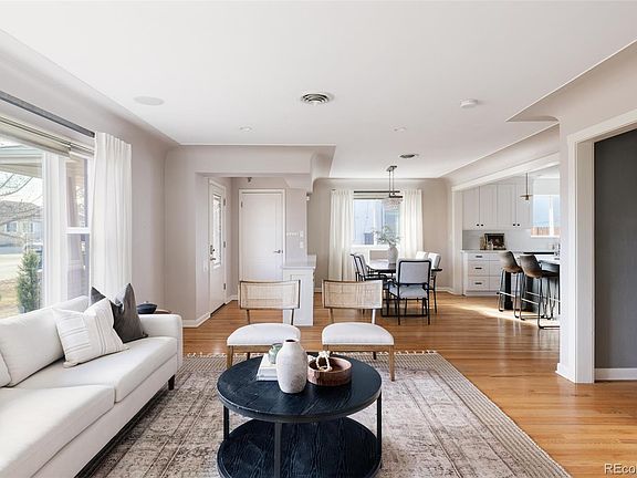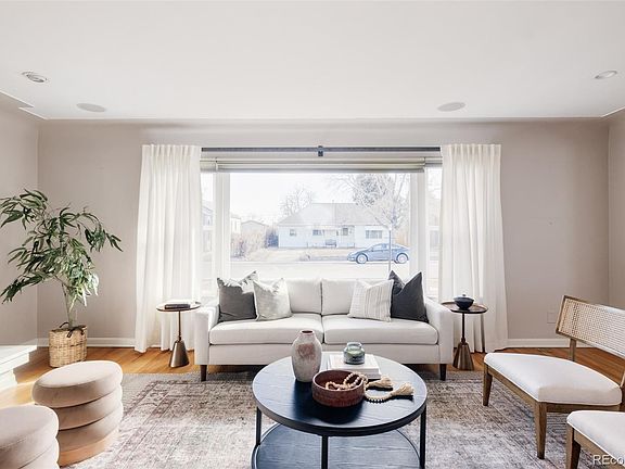 Welcome home to your beautifully remodeled brick ranch in sought-after NW Denver! This 1950’s ranch was expanded in 2017 to add a 2nd story & boasts over 2,300 above grade sq footage featuring 4 beds & 3 baths, including 2 ensuites. Gorgeous hardwood floors & an open concept floorpan greet you as you step inside. A great front window floods the living room w/ natural light & creates an inviting atmosphere alongside the beautiful wood burning fireplace. The kitchen was redesigned & remodeled in 2020 & offers beautiful quartz countertops, new cabinetry, a large island w/ bar stool seating, new stainless steel appliances w/ double ovens, under cabinet lighting, & more. The main floor hosts a large ensuite bedroom w/ full bath, a second main floor bedroom & full bath, additional flex room perfect for another family hangout area, plus a dedicated laundry room w/ additional storage. Head upstairs to your primary bedroom retreat w/ vaulted ceilings, large closet, & glimpses of the mountains! The spa-like primary bath is complete w/ a stunning double vanity & custom glass tile walk-in shower. A second bedroom (no closet) completes the upstairs space. Relax on your covered back patio w/ fully fenced yard. Enjoy your attached 2-car garage which was built with the 2017 addition. Plenty of storage space between home closets, yard shed & additional storage room off garage. Other recent upgrades include: tankless water heater (2020), double furnaces (2017), roof (2017), AC (2017), newer windows, updated electrical, upgraded sprinkler system, updated water line (copper), rain barrels, planter boxes, built-in speakers, & more. Great walkable location to Zuni Park, coffee, breweries, restaurants, Regis University, & more. Easy access to I70 to head to the mountains, the airport, or right into downtown. Do not miss this truly unique gem in Chaffee Park! This home may be eligible for a 2% credit of loan amount towards a rate buy-down and/or closing cost. Please call agent for details!