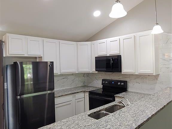 Beautifully remodeled 2 bedroom 1ba home. Remodeled Kitchen with white shaker cabinets and granite counters with breakfast bar. Upgraded appliances including convection oven with smooth top range, space saver microwave and black stainless refrigerator that is a luxurious upgrade! Luxury vinyl plank flooring throughout. Bathroom remodeled with tile floor, upgraded tile shower surround and upgraded vanity with granite top. One car garage. Large patio off sliding glass door. Large fenced backyard with storage shed (as-is). Plenty of room for rv parking etc on the side of the house and in the backyard. Walking distance to Wildflower Park and Wildflower Elementary School.