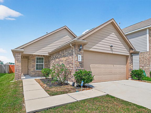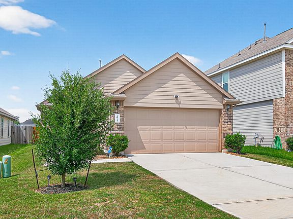 Welcome to this almost brand-new home in the desirable Cypresswood Landing subdivision. This beautiful single-story residence offers 3 spacious bedrooms and 2 full baths, designed with comfort and style in mind. The living room and primary bedroom feature elegant vinyl flooring, creating a warm and modern atmosphere. The open-concept kitchen is a true highlight, complete with granite countertops, stylish backsplash, and stainless steel appliances. Every bedroom and the living room come with ceiling fans for added comfort. Enjoy outdoor living in the private backyard with a covered sitting area, perfect for relaxing or entertaining. Washer, dryer, and refrigerator are included for your convenience. This home is ideally located near major highways, shopping centers, and commercial areas, making commuting and daily errands a breeze. A perfect combination of modern features, convenience, and location don't miss this wonderful rental opportunity!