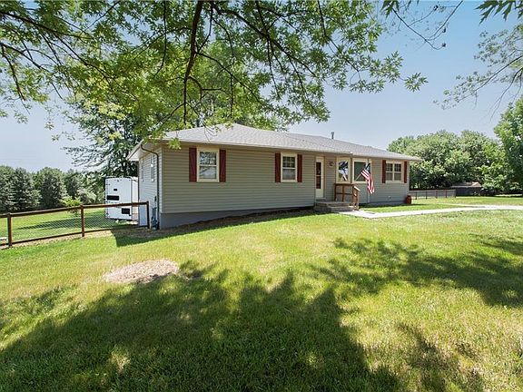 Rare Opportunity! Surrounded by beautiful views this immaculately maintained Ranch sits on almost 5 gorgeous acres!! Fully fenced & gated property including a new metal shed (12x20) & a large outbuilding (25x40) w/ upgraded electrical, concrete floors & unfinished loft space! Lots of upgrades inside & out including a new roof, new leaf guard gutters, low-maintenance vinyl siding, newer HVAC system with warranty & new carpet. Updated kitchen with LVP flooring, painted cabinets & backsplash! All appliances stay including refrigerator, washer & dryer! Spacious layout with 3 bedrooms & 2 full baths on the main level & 2 non-conforming bedrooms in the walk-out basement along with w/ a half bath, storage shelves & laundry area! Truly a great home with so much to offer! Grain Valley School District. Unincorporated Jackson County.