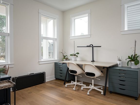 BETTER THAN NEW IN REED! Enjoy life in this light and bright Contemporary Farmhouse built in 2021 by a renowned Best of Show Street of Dreams Builder. Dramatic great room concept. 4 bedrooms, 3 full baths 1 of each on the main level! Gourmet kitchen with GE Cafe stainless steel appliances and island. High ceilings, impressive primary suite with a generous walk-in closet. Luxuriate in your fully fenced back yard with sizable covered patio with gas hook up and wired for heaters, garden shed and covered porch. [Home Energy Score = 7. HES Report at https://rpt.greenbuildingregistry.com/hes/OR10213523]