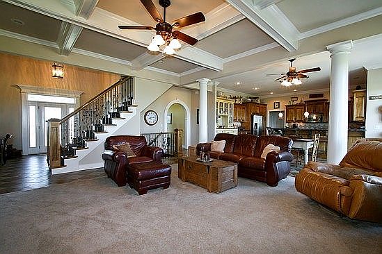 1.5 story home features 5 bedrooms and 4.1 baths on 5 acres M/L in Polo, Missouri. Exquisite details through out this former builder's home. Beautiful custom wood work and custom tile flooring. Unique concrete kitchen counters with furniture quality cabinetry. 46’X56’ outbuilding pole barn with 6” concrete slab.