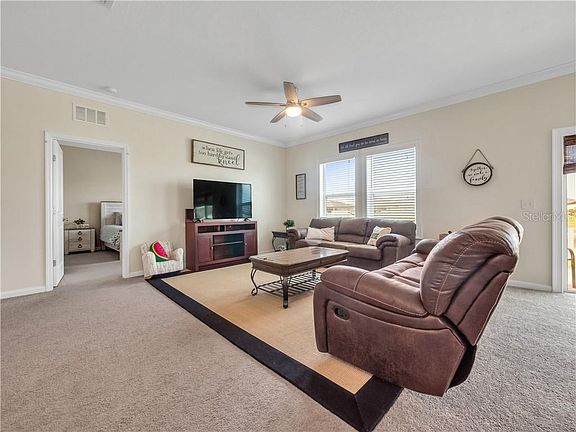 Looking for something move in ready? This is a must see! This home was built in 2018 and is a well maintained, three bedroom two bath home on the lake. Featuring an open floor plan, fresh interior paint with crown molding as well as molding around all windows. Plenty of natural lighting! The kitchen has a great amount of cabinet space, a large walk in pantry and includes stainless steel appliances. The primary bedroom features a bathroom and a large walk in closet. The living room has sliding glass doors leading to the patio and a fully fenced back yard with a gorgeous and relaxing view of the lake, especially during sunrise and sunset. Located just minutes from Legoland, Publix, restaurants, shopping and more. Welcome home!