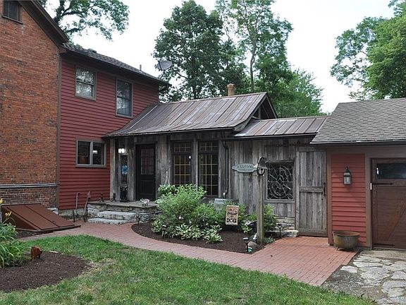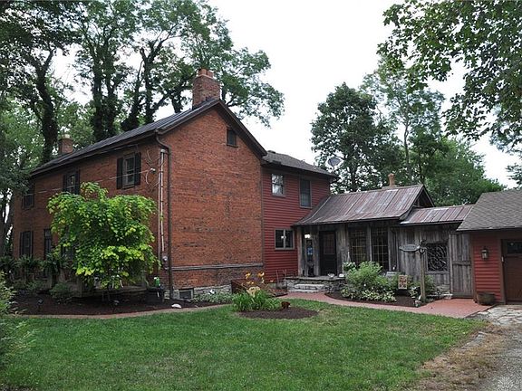 This 1819 4-owner historic farm features 3 bedrooms /2 full baths, 15+acres w/a private drive leading to a modernized main house, 2 car garage, & 4 outbuildings. House & garage connected by 4 season addition completed in 2018 w/ a gas fireplace, & custom laundry area. Extensive updates include: new kitchen (2016) w/granite counters & high-end appliances; 2 HVAC systems up/downstairs; metal roofs; & cellar sump pump! Property has: fruit trees, stocked pond, Tavern w/hvac, workshop, 2nd kitchen, and dog run. Original poplar wood floors, black walnut doors, built-ins, an open-beamed dining room, & the original brick house are restored. Too many details to list, contact Listing Agent for a packet of updates. Whether you are a professional chef, B&B owner, growing a family, or looking for a country retirement, this historic find is a 5-star property ready for you!