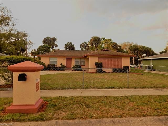 MULTIPLE OFFERS RECEIVED. Please submit your highest and best no later than Tuesday, March 6, 5.00 PM. This house is in an established neighborhood, and the owners are the same since its construction. The home is well kept. Concrete construction. It features a living room, four large bedrooms, two bathrooms, and a family room. Tile through the house except for the carpeted bedrooms. Laundry in residence, and screened lanai. The property is secured with an alarm system and chain-link fenced for privacy and pets' safety. The large backyard offers enough space for relaxing and gathering with family, friends and a brick/ concrete shed for storage. The City of Fort Myers maintains the canal at the end of the property. Ample concrete curved parking for several vehicles, yet there is an attached carport for a car. Only a few miles-minutes from I-75, Flea Markets, Downtown River District, and airport. Priced to sell and will not last long. Come and see it now!