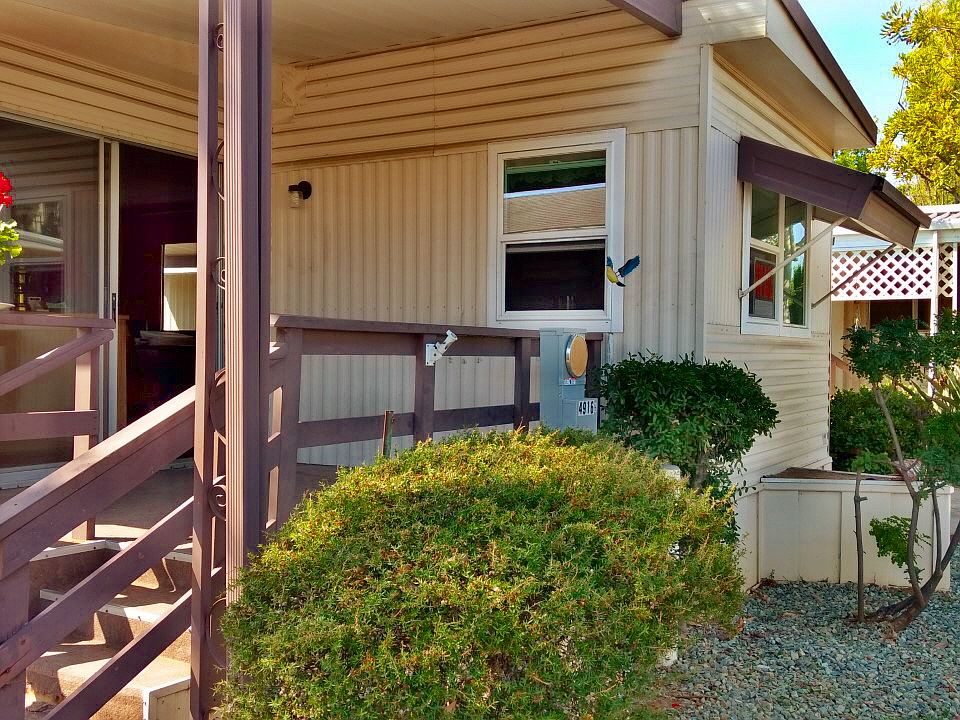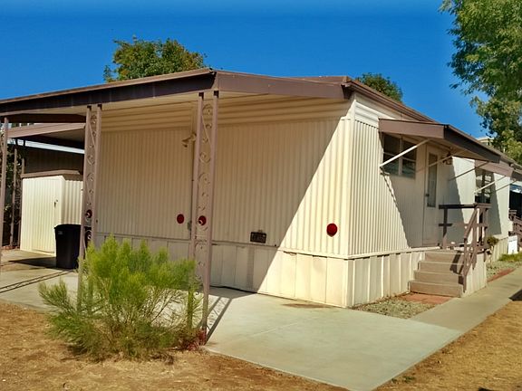 Way Better Than New! Everywhere you look, the upgrades in and around this home make it better than new. Gorgeous 2017 Goldenwest 3 Bedroom 2 bath home in The Cliffs Senior Mobile Home Park. The curb appeal alone will draw you to this house. Sitting porch includes the bistro table and chairs, Trex deck at the entry, cypress trees and potted plants on drip system, automatic hose reel, additional electrical outlets, extended coverage carport awning, huge shed with power, lighting, freezer and shelving. Vaulted ceiling, open floor plan, living room dormer, and remote-control ceiling fans all make for a comfortable living space. Plenty of windows, 2" faux blinds throughout, light carpet and upgraded flooring create a brighter environment. Open concept kitchen has a huge island with quartz counters, tile backsplash, upgraded refrigerator and dishwasher, pull out shelves in kitchen and pantry, topped off with recessed can lighting and beautiful pendant lighting, Keep looking - there's more! Central Air Conditioning, quality security doors, Ring security system, guest bathroom has upgraded shower doors, additional medicine cabinets and electrical outlets, Electrolux washer and dryer with pedestal's, and another full-size refrigerator in the utility room! And this house comes with a wall mounted 55" TV, bar stools, and gardener's custom potting bench. (LBN4539)