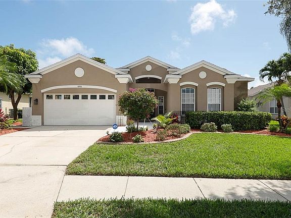 Situated on the most northern edge of the 32 acre spring fed lake, this Glenn Lakes four bedroom home boasts over 2300 square feet of living space. Completely remodeled late 2018/2019 including in roof with transferable warranty, refurbished spool (pool/spa), freshly painted inside and out, all new fixtures, flooring, baseboards, appliances, AC, hurricane impact sliding door and so much more. Open living and dining area looks right out to the water easily accessible to a half bathroom. Master suite has direct private access to outside lanai area. It also has a large walk-in closet, dual sinks, and walk-in shower. Three bedrooms to the front of the home share a full bathroom with double entry. Spacious lanai with unique pool/spa overlooking to the southwest on the gorgeous 32-acre lake. Watch each day as the rare birds swim by this calm, beautiful and most private setting. Additional storage space racks in garage along with a outside sink which is great to wash up quickly when working outside. Community park and tennis/pickleball court. Close to shopping, dining, the arts, beaches and IMG Academy. Low HOA fees