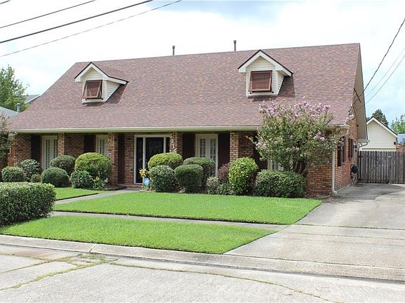 Lovely traditional solid brick hm near the lake welcomes you! Kit renov prior to 2004 w/new granite c-tops/cabinetry/appls & tile flrg. Breakfst rm w/Bay window overlooks large fencd backyd. Cozy den offers a gas fireplc. Roof is 4 yrs. new! All windows are dble pane w/storm shutters. Master bdrm down! New engineerd wd flrg in dining rm/new carpet upstairs. Both large living & dining rm w/French flr-to-ceilg windows invite nat'l light! 1 car gar + rm for boat/RV in driveway. No floodg in Katrina! FZone X!