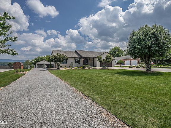 MULTIPLE OFFERS- all offers to be submitted by 4PM, Friday, July 7th. This house is immaculate - COMPLETELY remodeled with high end finishes including quartz, soapstone countertops in kitchen and bath, soft close cabinets and drawers, upgraded lighting and fans, tongue and groove ceilings in kitchen and den, and Bosch stainless appliances! There are two beautiful stone electric fireplaces. This is a large level lot with fenced in backyard and beautiful mountain views. Two car attached garage AND 2 car oversized detached garage with electricity and 30 amp electric hookup for RV parking! You'll love the upgraded 5 panel doors throughout, the custom walk-in closet and custom storage throughout, new TRECS decking on the back porch, fresh landscaping with extensive solar lighting, and so much more! Primary suite boasts custom marble walk-in shower with glass door and separate entrance to the back deck. Guest bath is equally upgraded with quartz countertops, make up vanity, tile surround with custom rounded glass door on the shower. NO CARPETING THROUGHOUT! Kitchen and garage refrigerators convey as well as stackable washer/dryer. Seller will leave all furnishings for a turnkey move with the right offer - Braden's and OP Jenkins furnishings throughout. Info for Buyer sheet is under 'documents' tab on MLS! *Additional drone photos and video to follow!*