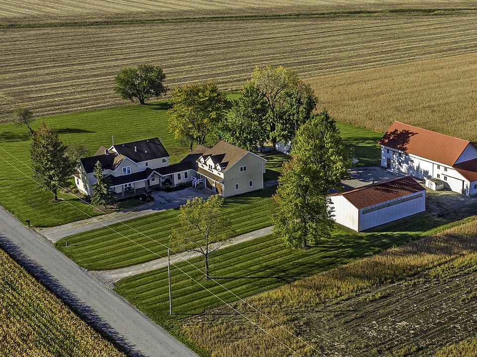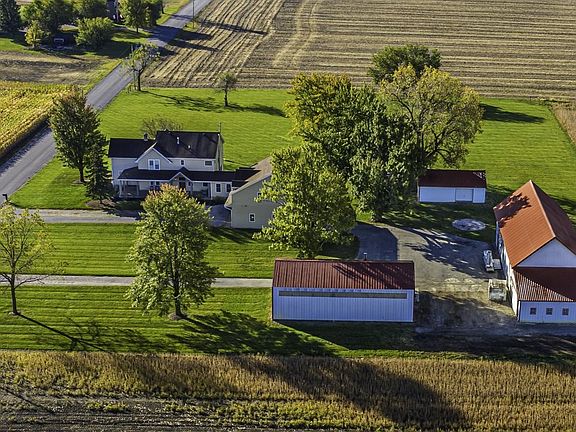 Country Living Minutes from all the Necessities. Just a Little over 3 Acres but surrounded by hundreds of acres of farm ground. The Original home was built in 1900 but Everything has been updated to meet today's standard of living. Over 5200 Finished Sq Ft with 3 Outbuildings! The Exterior of the home has been Meticulously Updated & Taken care of, 418 Sq Ft Covered Front Porch with Stamped Concrete, Vinyl & Stone Siding, 10 ft Garage door with Windows, Newer Vinyl Windows, 240 Sq Ft Deck on the South Side of the house and a 200 Sq Ft Covered Deck on the Westside overlooking play area. Main House with a HUGE Open Custom Kitchen with Tile Flooring, Very Large Center Island, 2 Sinks, 10 x 8 Walk In Pantry, Stainless Steel Appliances, Crown Molding, Brick Backsplash. Living room with Wood Stove, Stone Wall, Crown Molding. Main Floor Office or Den with a smaller 9 x 6 room with Built-In Desk and Shelve area. ½ Bath on the main off the Foyer. Upstairs on the Main house is the Master Bedroom with a Cathedral Ceiling, Walk-In Closet, Full Bath with a Walk In Tile Shower and Corner Tub. 1st Laundry room off the master Bedroom. 2nd Bedroom with a Log Cabin Feel with Built in Bunk Beds, a Play Room or Storage off the hallway . 3rd Bedroom with double Closets. Now Off the Foyer Walk through a door to Built In Locker area that then Opens to the back house with a 2nd Living space with a Vaulted Ceiling and a sitting room. Upstairs there are 3 nice sized Bedrooms, Another Living Space with Cathedral Ceiling, 2nd Kitchen Area and 2nd Laundry Room Plus another Full Bath. Office Area off the Garage with 2nd Locker room area and 2nd ½ bath. Outside there are 3 outbuildings. 70 x 30 Pole Barn with Electricity, ½ with concrete, Hay Loft and Lots of Windows for natural Light. 54 x 30 with 2 doors, concrete flooring, electricity and set up for a wood burner to heat. 26 x 34 Outbuilding with a garage door good for storage or to keep animals. 2 Driveways and large asphalted area in front of Outbuildings. 3rd Door for Attached garage on the back side. Home has a whole House Generator, carpets fleshly cleaned and landscaping just mulched. Seller to Provided New Home Owner with an HMS 1 Year Home Warranty. Move In Ready! 36 Pictures doesn't show the whole house. Google the Address and Watch the YouTube Video, it has More Pictures of the home.