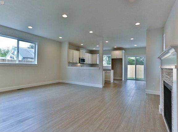 Brand new cozy & spacious 4-bedroom home w/ lots of features. Large and inviting entry leads to a house that is light, bright & has lots of natural light. LR has FP & is open to the Kit/DR Spacious kitchen has solid counters, S/S appliances and eating bar. The Master bedroom has a great bathroom and closet. Fully fenced with a covered back patio. This home will sell itself. East bedrooms have a view of Mt. Hood.