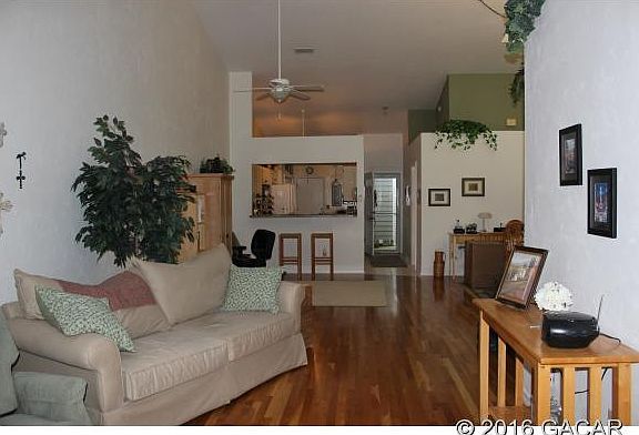 Gorgeous move-in ready 2 bedroom 2 bath townhome in desirable Vintage View. Large open floor plan, soaring ceilings, sun room, brick paved patio & 1 car garage. This home boast an updated kitchen with ceramic tile, newer appliances, plenty of cabinets, under cabinet lighting, pantry with shelves, and room for a breakfast table. Oak floors in the living room, dining room & office area. Unit is in immaculate condition, near shopping, UF, and bus line. The community offers pool, tennis courts, club house and all exterior maintenance.