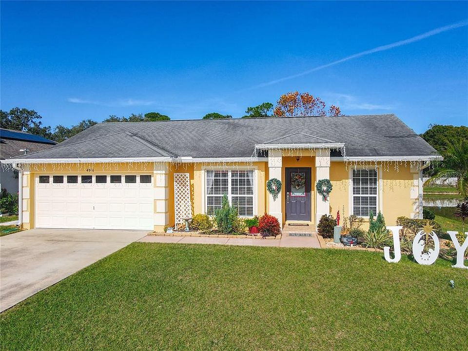 Welcome to your dream home! This meticulously maintained 3-bedroom, 2-bathroom gem boasts an open floorplan with cathedral ceilings, providing a spacious and inviting atmosphere. The split bedrooms offer privacy, and the home features brand-new stainless steel appliances, just one year old. Enjoy the tranquility of your fenced backyard with a charming garden, and relax on the screened 12x20 lanai with a beautiful view of a large pond – no rear neighbors ensure a quiet and private oasis. Don't miss the chance to call this serene property your own!
