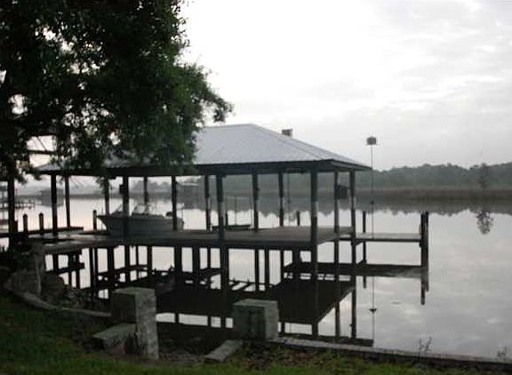 Waterfront!!! on beautiful Rabbit Creek. Home comes complete with the morning sun exposure & the southern breezes! Custom built by Steve Greene. There's an elevator so that this could be a "forever" home. Main level is at an almost 22' elevation. YAHOO! Makes for all kinds of extra perks including inexpensive flood insurance. The entire underneath of the home is a combination of triple garage, plus an extra bay for a golf cart & a workshop that is the length of a 4 car garage & as wide. Unbelievable room for boat trailers, boats, wave-runners & "stuff." .Then on top of this amazing space is an elegant yet comfortable home with over 3400 sq ft. All of the important rooms have fabulous views of the water. The Master even has a sitting room with a view. Enjoy the view from your bed on a lazy Saturday morning before you enjoy coffee on the screened porch. Then, get on your boat (from your own boat lift & dock) to enjoy a day on the River. The back porch which extends the width of the home is screened with room for loungers & tables. The perfect "Bunko" spot. The main level has 4 bedrooms & a craft room. Every bedroom has access to a bath including the bonus room on the top level. It even has its own private (very private) sunning deck. Solid interior doors, 2 tankless water heaters, Awesome kitchen. This home was built on pilings filled with concrete & rebar. You must come & spend some time enjoying the attention to detail. This home is "built like a tank!!" You will love living here.