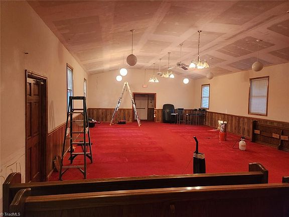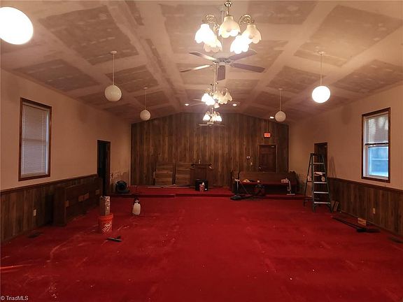 Amazing potential to convert this building (previously a Church) into a home or keep as a Church if needed. Seller already has plans drawn for conversion which can be adjusted easily as well or have your own drawn the way you want! Buyer to verify septic condition and capacity for amount of bedrooms desired. Plan is for 4 Bedrooms or 3 with office. 12 ft ceilings in main area and seller has verified ability to raise ceilings in existing “bedroom” in back. Two large half baths to easily convert to full baths. New roof and gas pack 2022. Call listing agent for more info. Large backyard with creek running across the very back.Quiet established neighborhood in town of Summerfield. Possibly can be purchased using 203K loan or construction style loan or may be able to have seller complete remodel/conversion for buyer ( price would be higher) Agent is seller.