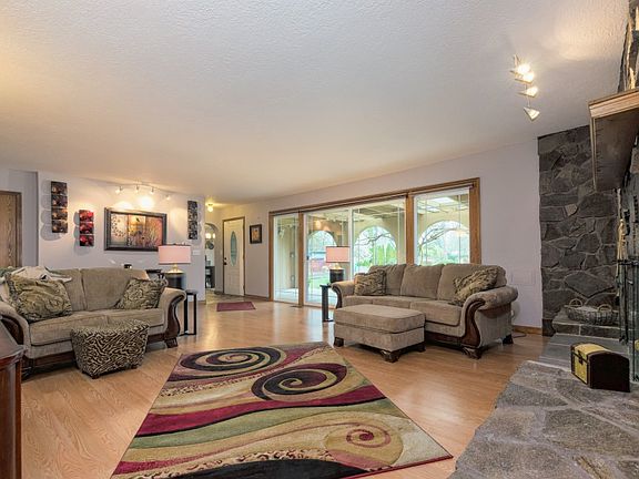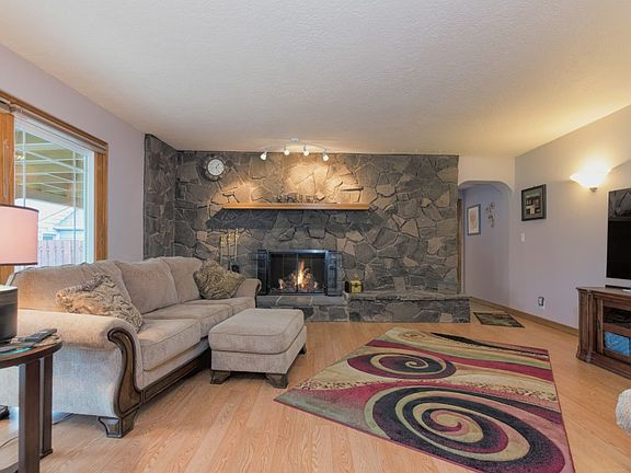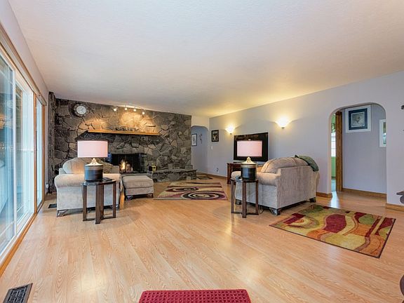 Exceptional home on quiet dead end street. Large windows & Southern exposure with abundant natural light. Impressive stone fireplace, spacious open floor plan & updated throughout. Huge family-media room up with full bath. Sensational outdoor living space on over 1/2 acre lot, covered patio, 270 sq.ft upper deck & 825 sq.ft lower deck with built-in fire pit. 30'x18' heated shop with 220v, 44'x16'x16' RV-port with 110v, 24'x22x12' carport & green house
