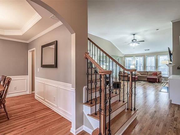 Gorgeous craftsman style home in Trilogy Park subdivision. Don't miss out on this 4 bed, 3.5 bath open concept floor plan. Hardwood floor throughout main level, renovated kitchen w/new cabinets, luxury quartzite counter tops, stainless steel appliances & decorative tile work w/a view to the family room. Family room boasts high ceilings, built-in bookcases & a gas fireplace. Large master on main w/tray ceilings & spa like, tiled bath & custom master closet. Full, finished basement w/half bath stubbed for a shower/tub. Upstairs HVAC & water heater replaced in 2018.