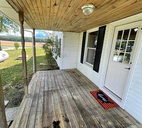 Rural living at its best. Just minutes outside of town, with amazing views. This 3-4 Bedroom 2 bathroom farm house has large open rooms. The spacious airy kitchen features rustic beams, and lots of countertop space with breakfast bar. The side covered porch area allows beautiful fall relaxation. And as it gets a bit more chilly, step into the three season room, the enclosed front porch. The home has been updated with two bathrooms, remodeled kitchen, and flooring throughout.Conventional or Cash Purchase only.