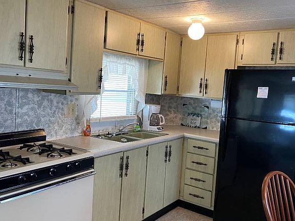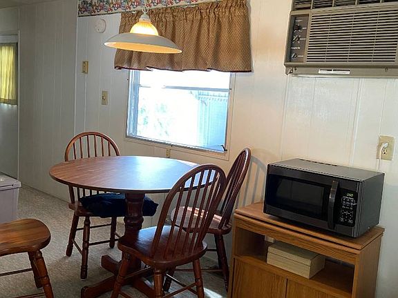 This is a mobile home for sale in a 55+ community on a rented/leased lot. Year round or seasonal getaway. This 1BR/1BA is within walking distance to Bradenton services, shopping and dining. The home has carpet throughout the living and dining areas. There are vertical blinds. The eat in kitchen has ample storage, refrigerator and a gas stove. The bedroom has custom built ins and a closet. The bathroom has vinyl flooring, a tub/shower combination and a towel closet. The carport will park 1 maybe 2 cars tandem style. There is a shed on the back for storage. The lot rent is $425 and includes trash pickup and the clubhouse with a calendar of activities. K&K Mobile Home Park is conveniently located in Bradenton near the bus line for easy access to the Gulf beaches and the surrounding area.
