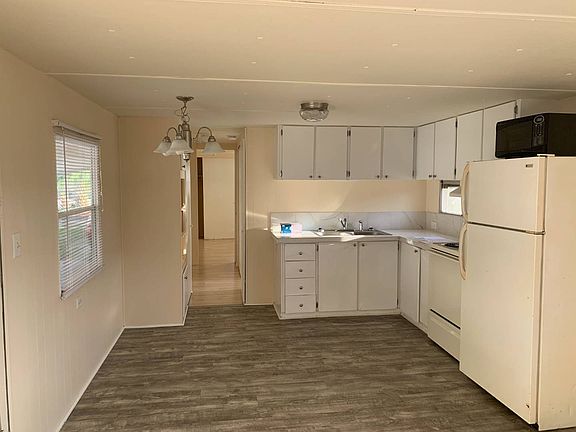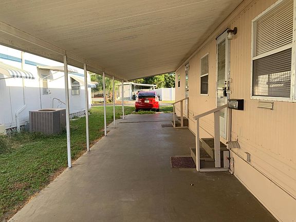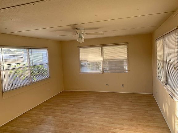 This is a mobile home for sale in a 55+ community on a rented/leased lot. Great year round or seasonal getaway! 1BR/1BA mobile home with laminate floors throughout. Eat in kitchen with a pantry and a closet. The home has been treated for termites and has two newer window A/C units. The windows are 3 years old. There is a stack washer/dryer in the hall bathroom. Carport can park up to 4 cars tandem style. The lot rent is $391 and includes the trash. The water bill is added by the park at a rate of about $25 monthly.