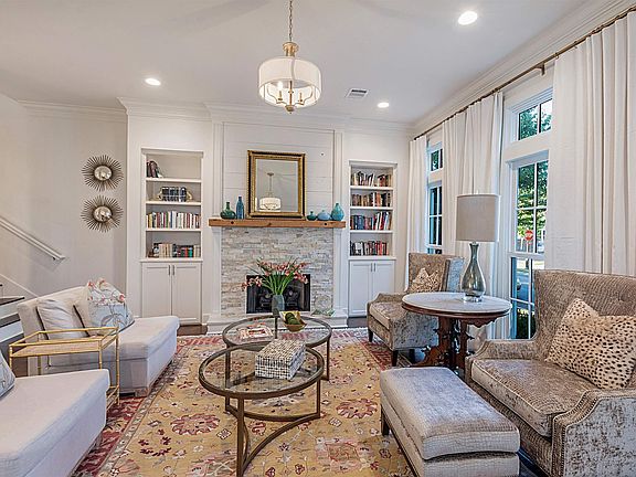 Come see this almost 3000sf- CUSTOM BUILT 3 BEDROOM/3 BATHROOM WITH A MEDIA ROOM. Why wait for new construction when you can have MOVE-IN READY? This home features an open floor plan AND ample natural light. The chef’s kitchen has painted custom cabinets, slab quartz countertops with subway tile backsplash, stainless steel appliances, 5 burner gas cooktop with pot filler and wood hood vent, wall oven with built in microwave, under cabinet lighting, and large center island with breakfast bar. The kitchen and dining rooms are open to the living room, which has floor to ceiling windows, a gas log fireplace with stone and shiplap surround, custom built ins with glass front cabinets, and triple crown molding. One of our favorite features is the built in WET BAR under the stairs. You have to see it! Sitting room off of the kitchen could also be a breakfast room. The spacious master bedroom is located downstairs and features a vintage style en suite bath with a freestanding soaking tub, separate tiled shower with double shower heads, dual vanities, separate water closet, and large walk in closet with built ins and a custom built SHOE CLOSET! Near the master is the laundry room and as strange as it may sound- it is a wow factor! Upstairs there is a media/exercise room which could easily be converted or partially converted into a 4th bedroom. Two additional bedrooms and one full bath are also located upstairs. Hand-scraped birch wood flooring throughout with vintage tile in all baths. The private rear courtyard includes a covered patio, complete with fans for summer entertaining! This community also features swimming pool, clubhouse, community garden, and lakes. Close to Sprout’s Farmer’s Market, great restaurants, spas and convenient access to I-10. Call today to schedule your private tour!