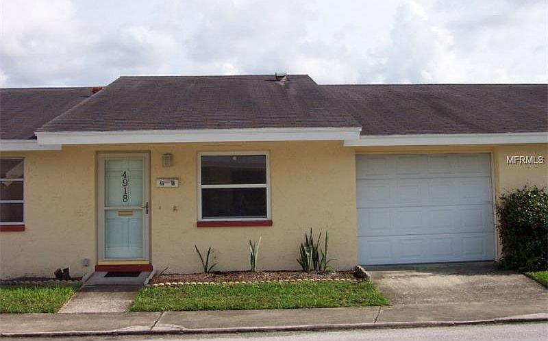 AWC - Taking Backup Offers Contract, back-ups taken. Rare opportunity! Condo style villa with garage & exterior maintenance included - care free living, only $23,900. Low maintenance fee of $185 covers exterior plus water & trash, clubhouse, & pool. Perfect for vacation, rental, or year 'round. 55+ community. Optional, Private Beach on the Gulf of Mexico ($144 year), Cabanas can be reserved for special events. Walk to community pool, shuffleboard & Recreation Hall. Walk to shopping plaza with extensive shopping (like Publix, Big Lots, Bealls Outlet, Old Time Pottery, Tuesday Morning, Sally's, Lumber Liquidators, health club, beauty salons, New China, pizza, liquor/tobacco, PC repair, tax returns, McDonalds), banking & much more, (including Cracker Barrel & Starbucks). Light & bright interior. New neutral carpet & paint. All newer: energy saving windows & front storm door, kitchen appliances & hot water heater. Contemporary ceramic tile in kitchen, bath & foyer. Large master bedroom w/ceiling fan & double closets. Two additional closets in hall. Convenient, ceramic tiled hall bath. Tiled kitchen with light appliances and cabinets for lots of storage, and easy access, door to garage. Dining area off of kitchen, and spacious living room with ceiling fan. Washer & dryer in garage with door opener & built-in storage. Small, (not noisy) inside pet allowed, like cat or bird, no dogs. Immediate occupancy. Don't leave the car out in the sun or the rain, just move-in! & enjoy the fantastic Florida lifestyle for only $23,900!