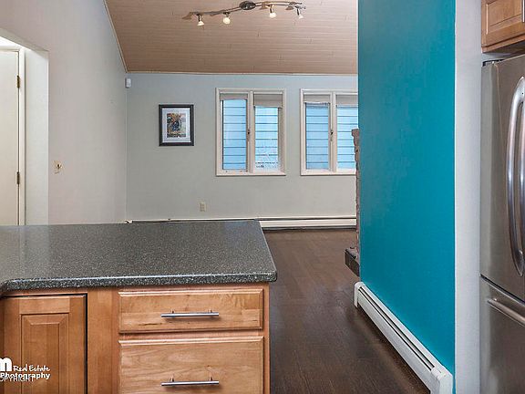 Ranch home with vaulted ceilings and large windows to maximize natural light. Great layout 3br 2 ba with large 2car 500+ sqft garage. Master bedroom with private access to new Trex deck and peaceful back yard. Solid surface kitchen countertops, Stainless appliances. And dont miss the architecturally designed metal roof !!