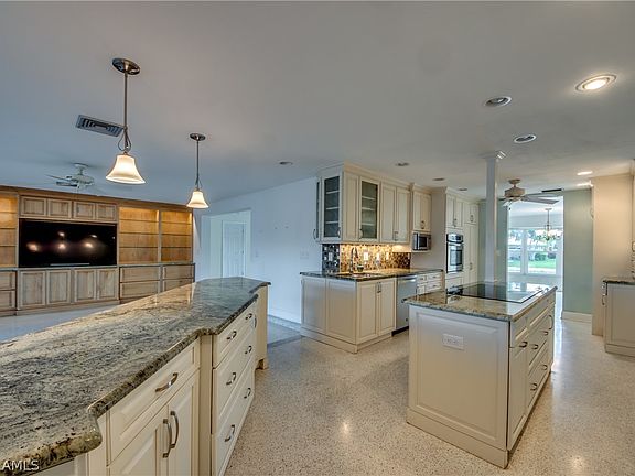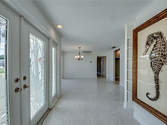 Inside, discover the heart of the home—a beautifully remodeled kitchen (prior to hurricane Ian) complete with a secret walk-in pantry, bisque-colored raised panel cabinets, soft-close drawers, and granite countertops, perfect for culinary enthusiasts. You will never run out of storage in this kitchen! It is truly the centerpiece for conversation and serious cooking! Three very spacious bedrooms in a split bedroom layout for privacy. The master suite features an updated vanity, shower and large walk in closet with built in organizers. The guest bathroom too is spacious with a separate tub and shower, preserved in their retro finishes, plus an updated vanity, sink and make up vanity. The floorplan (copy attached to the MLS) also features areas for formal dining or a possible home office if desired. Throughout the home, original terrazzo floors exude timeless elegance, while offering a blank canvas for your personal touch.
