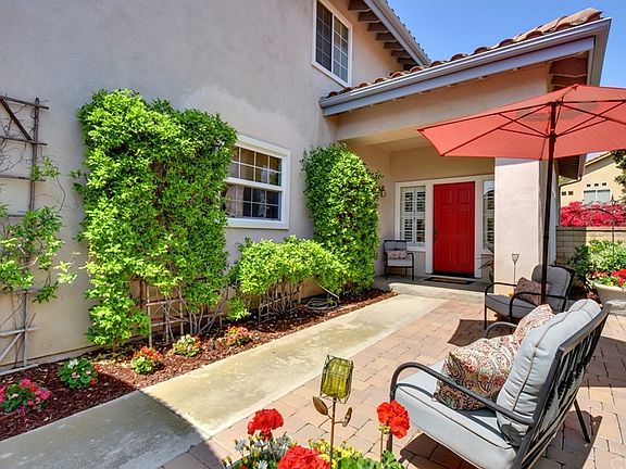 Classic series plan 1 in the highly sought Sorrento Community! Prime interior cul-de-sac location. Approach through the private courtyard entry featuring pavers, rock, brick accents, & lush greenery. This model is beautifully designed with vaulted & 9' Ceilings on both floors & offers lots of natural light. Spacious floor plan has 4 bedrooms, 3 baths, & 2,439 sq ft of living space. Convenient bedroom and bathroom on the main level. You will appreciate the many features including: dual paned windows, rounded corners, raised panel doors, recessed lighting, & central AC. Kitchen offers a large counter bar, gas cooktop, microwave & convection oven, walk-in pantry, lots of counter space & cabinets. The kitchen presents a nice view of the backyard and is adjacent to the family room that includes a brick fireplace. The master suite has high ceilings and overlooks the backyard. The spa-like master bath boasts a soaking tub, separate shower, skylight, walk-in closet, vanity, & dual sinks. Two additional upstairs bedrooms share a central bathroom with dual sinks. Interior laundry room has utility sink & cabinets. Escape to your backyard paradise offering a large patio area with pavers, an outdoor fireplace, fountain, brick capped planters, grass area, & more. Direct access to 2-car garage. Walk to Veteran's Park and close to Civic Center. Close to great Cypress Schools including: Landell/Arnold Elementary schools; Lexington Jr. High; Cypress High; Oxford Academy (testing req'd).