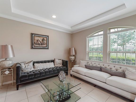 SPECTACULAR 2 Story luxurious home by Taylor Morrison offering 4 beds, 3 full baths, 1 half bath & conveniently located in the highly desirable Master Planned Community of Riverstone w/ tons of amenities. Grand entry w/soaring ceilings, upper level access by grand staircase, & Formal Living and Dining off to the right, great for large gatherings. Gourmet Kitchen boasts granite countertops, extended island w/Breakfast Bar, under cabinet lighting, Stainless steel appliances, custom tile backsplash & more! Breakfast Area for meals w/friends or family. Luxurious Living Room w/wall of windows & backyard access. Primary Suite w/tray ceilings & access to spa like Primary Bathroom Oasis w/dual sinks, large tub & glass encased shower. Enclosed Home Office on main floor & tons of space to make your own. Secondary beds on upper level with 2 full baths PLUS a dedicated Media Room! Backyard w/tons of greenspace & covered patio! Includes Washer, Dryer, & Refrigerator!
