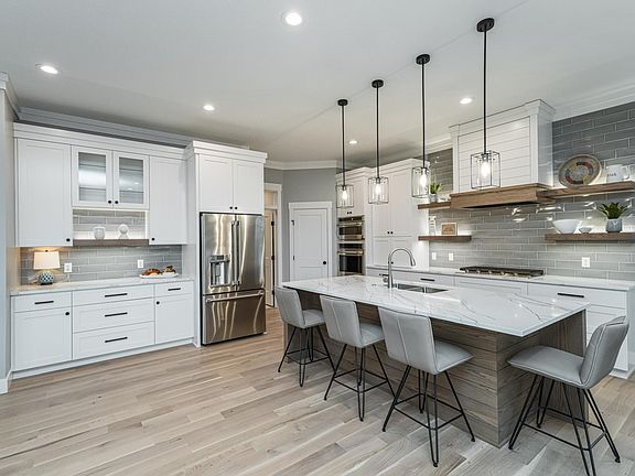 Award winning builder has custom designed a beautiful 5 Bedroom, 5 Bathroom rambler nestled into a cul-de-sac lot in the Scenic Oak Subdivision. Luxurious finishes exuding functionality & distinction with a bright, open floor plan & 10' ceilings. The large gourmet kitchen features a grand center quartz island, custom cabinetry, designer lighting & walk-in pantry. Architectural features: custom wood work, creative design elements & unique finishes including 2 gorgeous fireplaces which serve as the focal points of the main & lower levels. Retreat to the primary suite w/ tray ceiling and private bath, heated tile floors & spacious walk-in closet. The welcoming screened in covered deck flows seamlessly from the dining room, sure to be a favorite. Enjoy more living space in the LL featuring family room, wet bar, 3 sizable bedrooms & 2 bath. Wooded backyard on .5 acres in an established tree-lined neighborhood & conveniently located w/in walking distance to trails & parks.! Call for a tour!