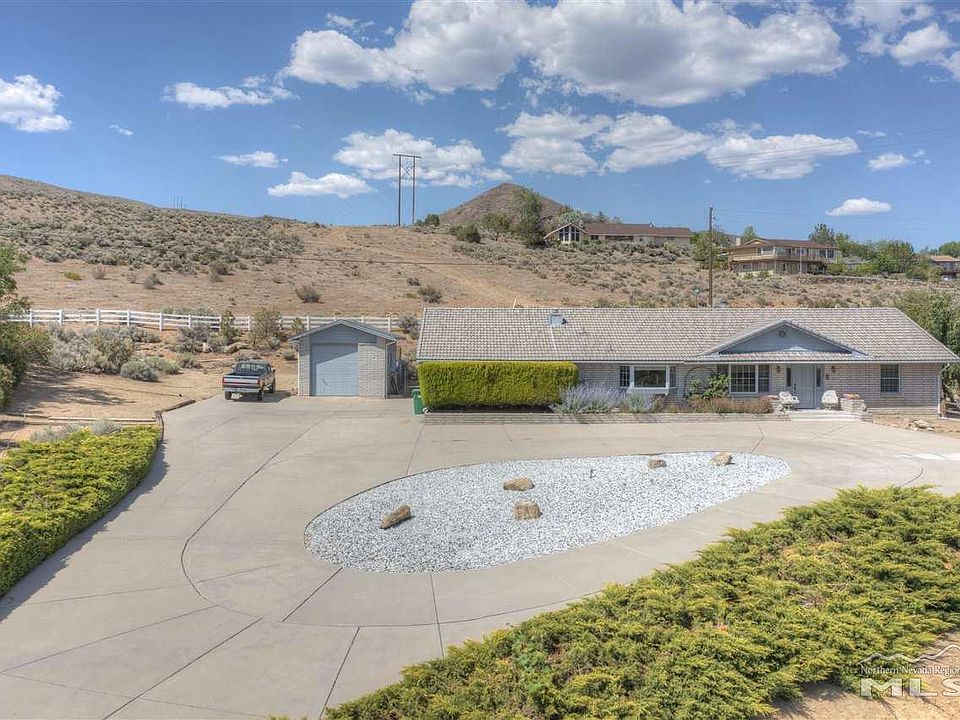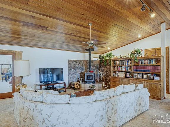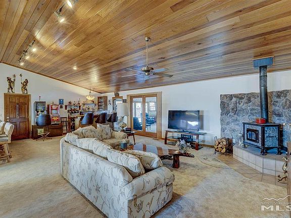 Timeless floorplan located on a fantastic, private lots with views down the Jobs Peak! This unique property has so much to offer with an RV garage, horse zoning, open floorplan and unbeatable views! This house was made for entertaining with a large open kitchen with a huge breakfast bar which opens to the great room. The great room has high ceilings with dramatic wood ceilings, a wood burning stove, a separate bar area with a mini fridge and water and is open to the dining room.