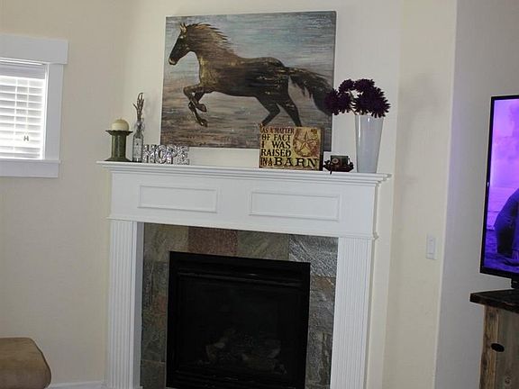 Accepted Offer with Contingencies. Many upgrades in this home that homes in area do not have. Hardwood floors, cherry wood cabinets, AC, gas fireplace, UG sprinklers, covered patio, and double garage. Master with walk in closet & soaking tub is on opposite side of the spare bedrooms. Gate in back yard leads to trails to the trees and land backing property. Incredible backyard for relaxation or entertaining.