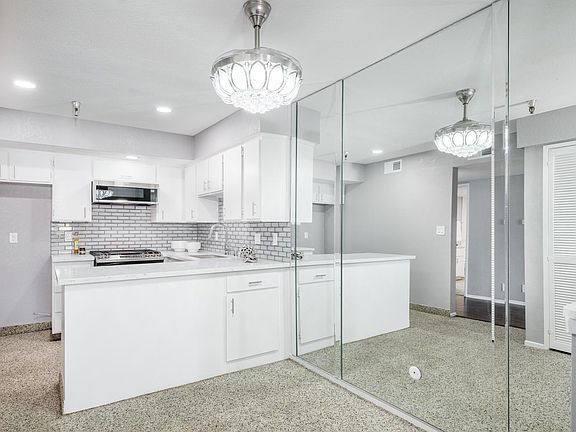 This fantastic 1 bedroom, 1 bath condo has been updated to the highest level. Sleek, sophisticated and superior finishes throughout. Beautiful wood flooring adds warmth to this amazingly open floor-plan. The kitchen is the heartbeat of the home and it will have your heart racing when you see how gorgeous it is with quartz counters, glass subway back-splash, stainless steel appliances, deep stainless farm sink and mirrored dining area, with wet bar. The bathroom and master vanity has been updated with new counters, all new plumbing fixtures, bathtub, toilet and tile tub surround. The master bedroom is complete with a huge walk in closet and sliding glass door to security screened patio. From the patio, you have full access to your own private back yard. Large enough for a lovely garden &/or space for grass and a play space for pets. Included with residency is an on-site gym & sauna, outdoor pool, gated underground parking, maintenance of building exterior & grounds, basic cable, water, trash, sewer, and security cameras in common areas. One may make arrangements with property management to use the recreation center with kitchen. Love where you live!!