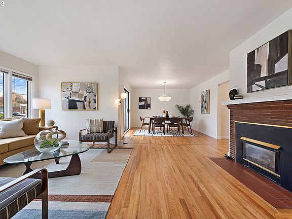 Great opportunity in the Cully neighborhood to buy this lovely mid century home that has been in the same family since its construction in 1953. Desirable layout with open yet defined spaces for the entry, living and dining areas. Updated kitchen with eating bar. 2 bedrooms and 2 bathrooms, including large primary suite with attached bath. Newly refinished hardwood floors and freshly painted main floor. Large windows and abundant sliding doors throughout help create a happy home with plenty of natural light. Oversized, manicured lot with multiple areas to hang out and enjoy the outdoors...Good sized yard and deck in the backyard. [Home Energy Score = 4. HES Report at https://rpt.greenbuildingregistry.com/hes/OR10223501]