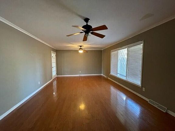 1960's style ranch home on 1+ acres. 3 bedroom, 3 bath with a large master closet and master suite to include a Whirlpool tub and walk-in shower. Casement windows with fully applianced kitchen and washer/dryer.