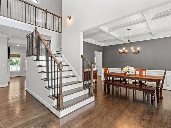 This 4 bedroom, 3.5 bath home is distinctively designed with the upscale buyer in mind. You step into the home through beautiful double doors to a 2-story foyer and are flanked by an office and formal dining room with coffered ceiling. The gracious great room affords built-ins and gas log fireplace and is open to an amazing breakfast area & kitchen with oversized island, SS appliances, microwave, 5-burner gas stove, white cabinetry galore and pantry. You will love the pretty wood floors. The primary suite boasts a tray ceiling, fan, walk-in closet, dual sinks, garden tub and tile shower. The laundry, powder room and 2 car garage complete the ML. Upstairs find a HUGE, versatile bonus room, 3 bedrooms (one with private bath), hall bath and lots of storage. Enjoy the deck in the fenced back yard. All conveniently located near shopping & highways on a private street.