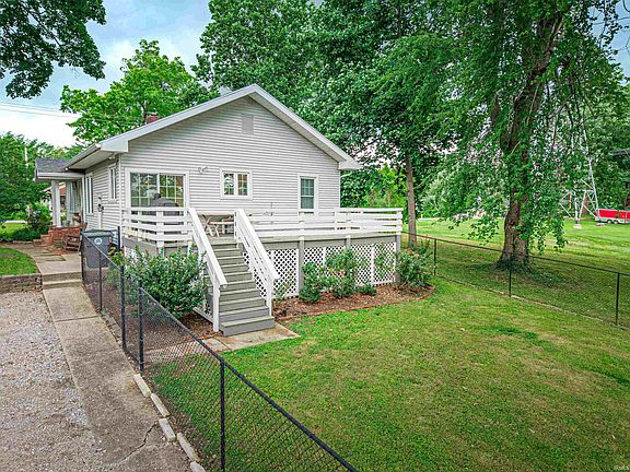 A little slice of paradise on Evansville's north side! Start your mornings with coffee on the charming covered front porch, or take in stunning sunrises from the spacious back deck overlooking a peaceful, expansive backyard. With a clear view for miles along the adjacent easement, you’ll enjoy the serenity and space this property offers. Step inside to find timeless original hardwood floors, crown molding, and a beautiful fireplace that sets the tone for the cozy living room. The formal dining room, complete with French doors and updated lighting, is perfectly situated between the living area and the kitchen. The eat-in kitchen has been completely remodeled down to the studs, boasting high-quality cabinetry, dovetail drawers, stainless steel appliances, a tile backsplash, and a sliding glass door that leads directly to the back deck—blending indoor and outdoor living. All three bedrooms feature hardwood floors and surprisingly spacious/functional closets—rare for a home of this era! Similar to the kitchen, the full bath has also been completely remodeled with new electrical, plumbing, tile floors and a tiled tub/shower combo. Need storage? The full 1,400 sq ft unfinished basement offers endless possibilities: storage, a home gym, office, or even additional living space. Recent major updates include: Dishwasher & Refrigerator in 2024, Water Heater in 2023, Roof in 2022, Updated electrical panel and electric to garage in 2021 & HVAC in 2019. This home features quality, charm, and functionality on a beautiful .69 acre lot near all the conveniences the north side has to offer!