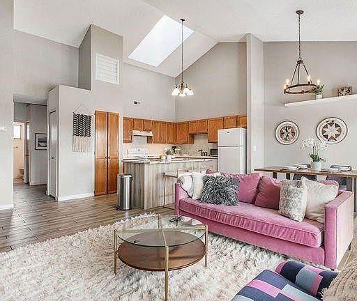 This is your opportunity to live in the Spanish Oaks community. The private entryway creates a perfect place to kick off your shoes before you enter the living room with a nice open floorplan & vaulted ceilings. The built in entertainment center & fireplace create the perfect space to hang out & grab a beverage from the bar fridge. Enjoy views of the common area/open space from either your large private balcony or dining area. Large kitchen island offers your guests additional seating as they gather in your home. Retire to your spacious master suite that includes access to your private balcony and a walk-in closet. The en-suite has been remodeled with a seamless glass-enclosed shower, dual shower heads and concrete countertops. The attached garage provides private access to the home.