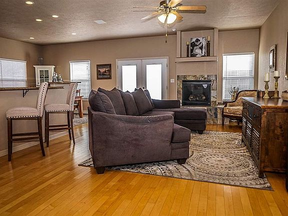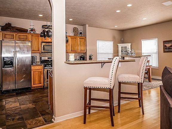 Well maintained with upgrades. Home's 3rd bedroom was converted into an office. Natural Maple Engineered hardwood floors, Brazillian granite counter tops, with backsplash kitchen and baths. Custom Aquarium shower in owners bath. Home backs up to a undeveloped pasture area. Pet area on north side with dog access to garage. Open concept living room, kitchen and dining areas. Gas Log fireplace, Privacy fenced back yard. Pleasant interior entry large enough for a choice piece of furniture. Beautiful hickory kitchen cabinets, 5 piece owners bath includes linen closet, shower is glass enclosed, and soaker tub. 8 x 10 storage shed on concrete slab. Walk-in owners suite closet, Entrance coat closet and additional hall linen closet. Newer Breeze Air cooler. Avg. elec 151. Avg. gas 54.20 more in agent remarks