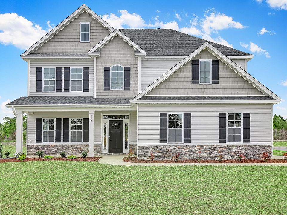 The Avalene welcomes you with charm the moment you arrive. Beautifully built with coffered, trey, and vaulted ceilings, wainscoting, and desired features throughout. The kitchen is the center of attention boasting beautiful cabinets, granite countertops, Stainless appliances, pantry, center island with seating, breakfast area, and all is open to the spacious living room with gas Fireplace and the adjacent sitting room. The spacious master suite is upstairs with trey ceiling, tile shower, his & her vanities, huge walk-in closet, and an additional finished storage room. Three more Bedrooms, one with private bath, and the laundry room complete 2nd floor. Luxury vinyl plank flooring, covered porches, exterior stone accents, side load garage, & much more! Builder giving use as choose to Buyer